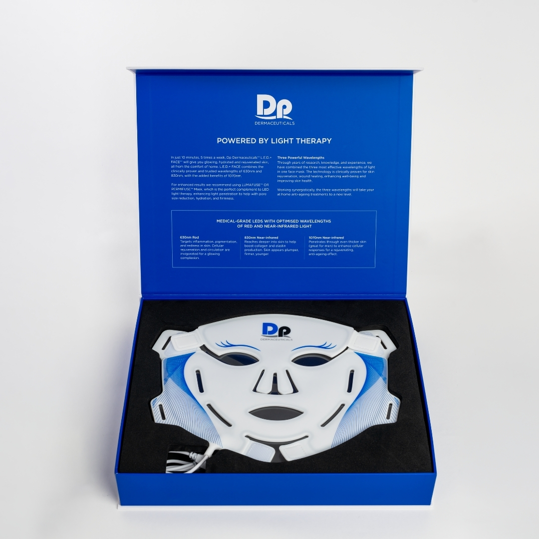 Masken ska läggas på ren torr hud eller för denna mask anpassade produkter (Luma Fuse Hydrogel Mask), då vissa ingredienser kan göra huden ljuskänslig eller göra behandlingen mindre effektiv. Applicera Luma Fuse Hydrogel Mask över ansiktet och sätt L.E.D face över och spänn de elastiska banden så masken sitter tätt mot huden. Tryck in startknappen så att den 10 minuter förinställda behandlingen sätter i gång. Masken slås av automatiskt och behandlingen kan fördubblas utan risk. Följ upp med Dp Dermaceuticals Vitamin Rich Repair och om huden ska utsättas för solljus påförs även skyddande Cover Recover SPF30.