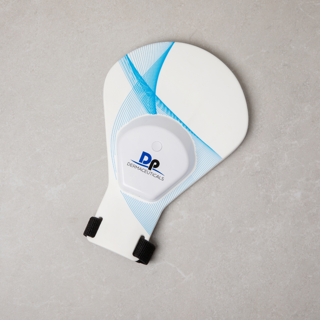 Dp Dermaceuticals L.E.D. Hand är en innovativ, bärbar mask anpassad för handryggen för både klinik och hemmabruk. Masken har rött ljus och nära infrarött ljus där inte mindre 77 dioder ger synliga resultat på huden, vilket flertalet kliniska studier bekräftar.
